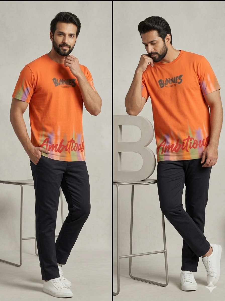 Make a statement with the Bold Ambition Graphic Tee, designed for those who carry confidence in their style. Featuring a vibrant orange base with subtle gradient accents and bold typography, this t-shirt brings energy and attitude to everyday wear.