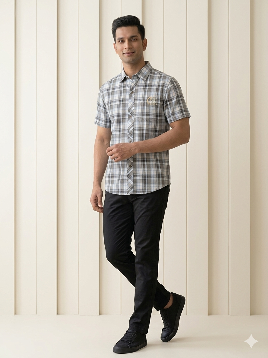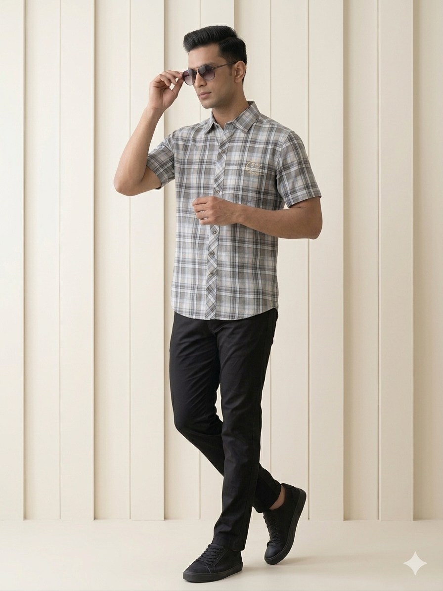 Upgrade your everyday style with this versatile Classic Check Shirt, designed for a perfect balance of comfort and sophistication. Featuring a subtle check pattern in neutral tones, this shirt offers a timeless look that works effortlessly for both casual and semi-formal occasions.