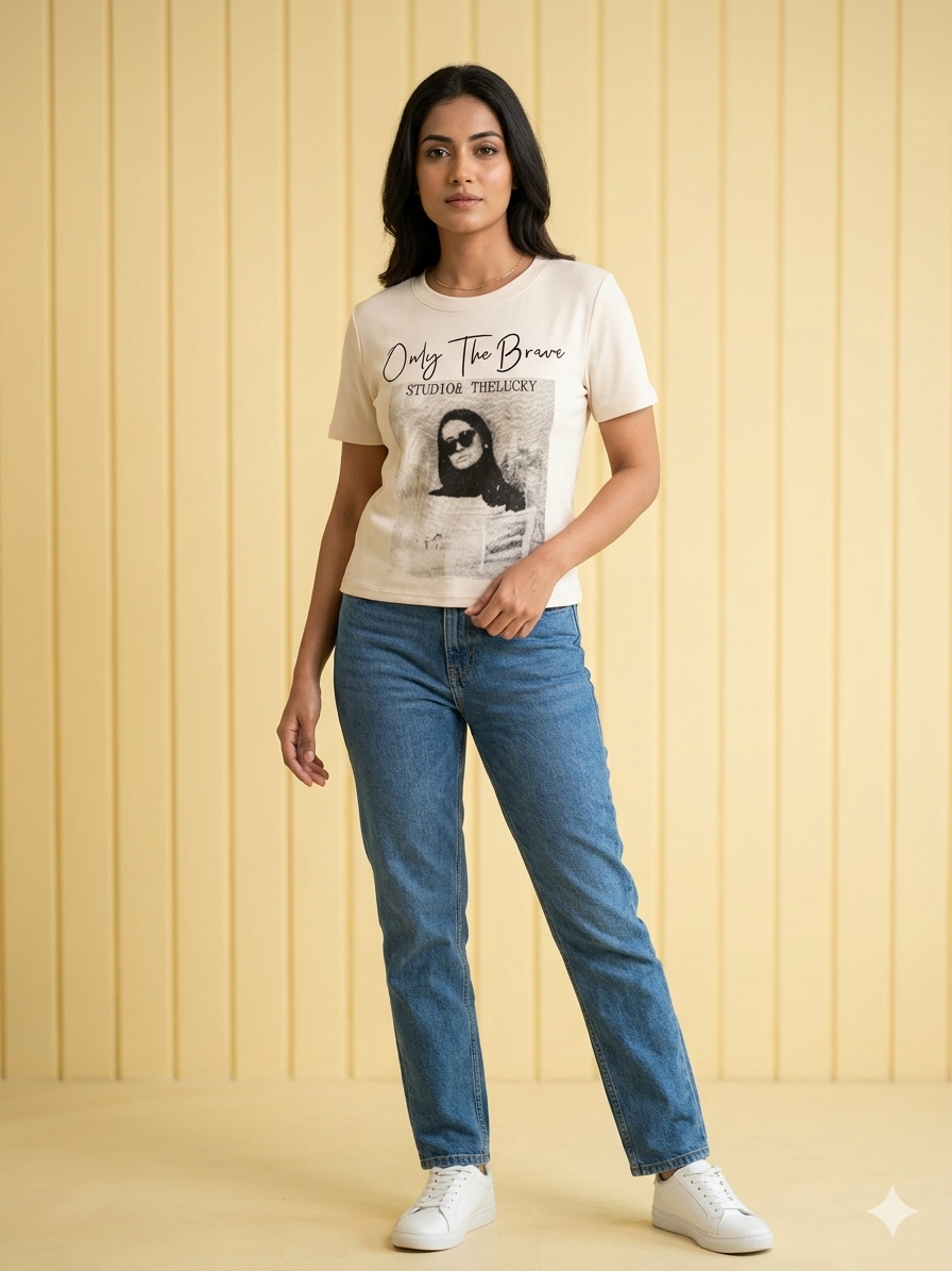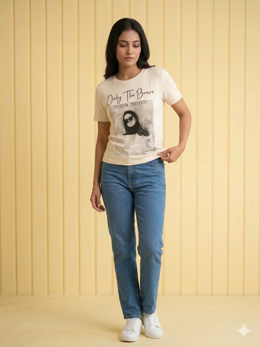 Cream Printed Tee