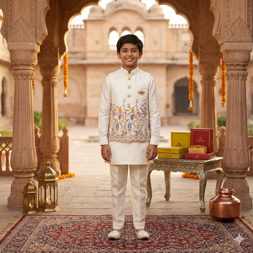 Perfect for weddings, celebrations, and festive gatherings, this outfit ensures your child stands out with timeless elegance and confidence.