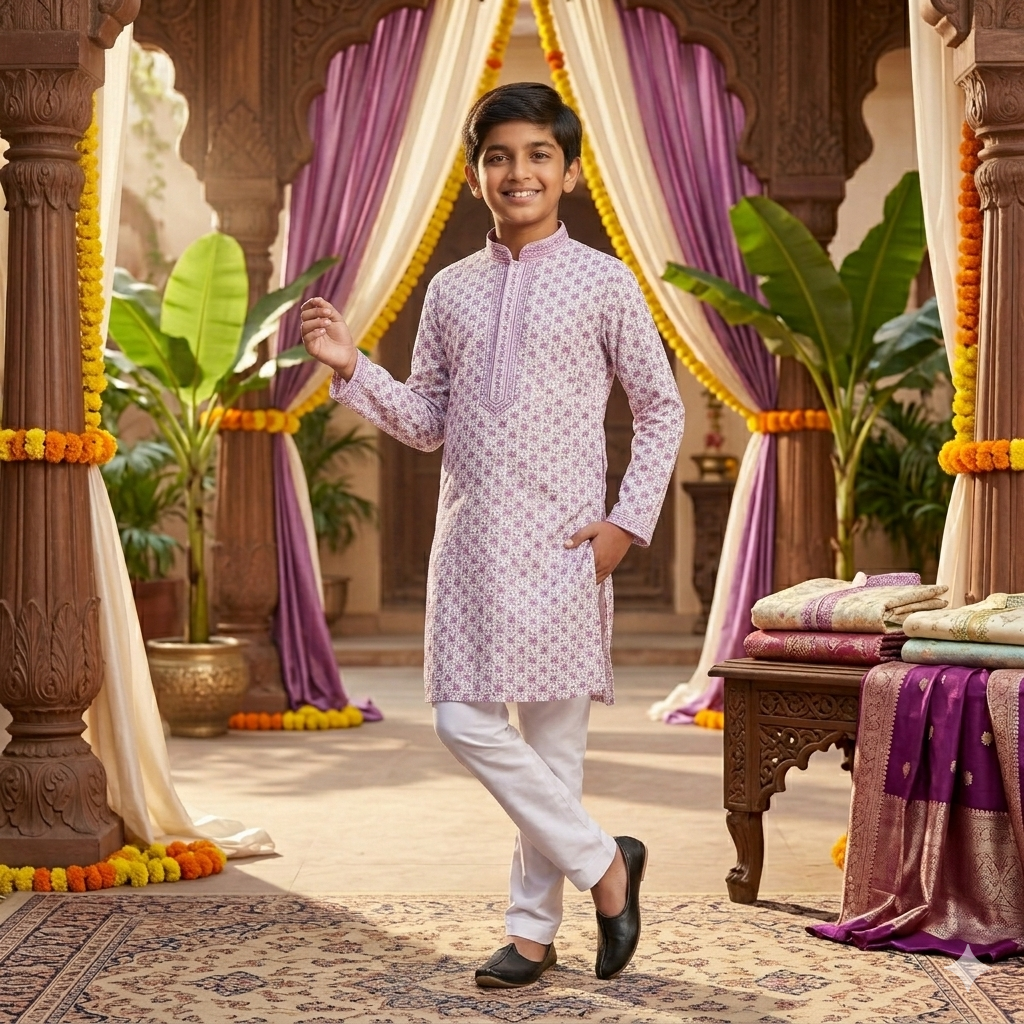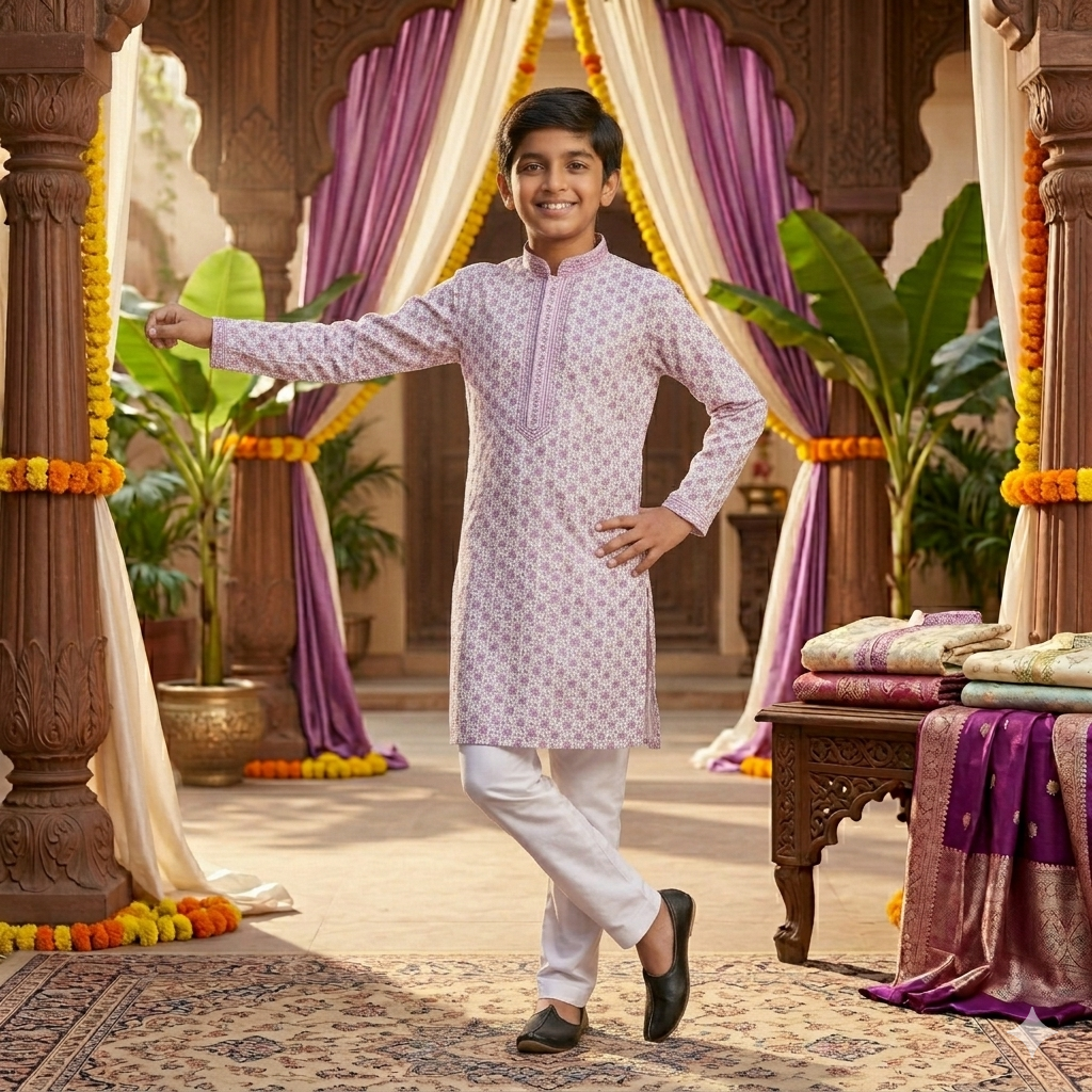 Add a touch of charm and elegance to festive celebrations with the Lilac Festive Kurta Set, designed to bring out a soft yet vibrant ethnic appeal. Featuring a soothing lilac hue with delicate all-over prints, this kurta offers a graceful and refreshing look.