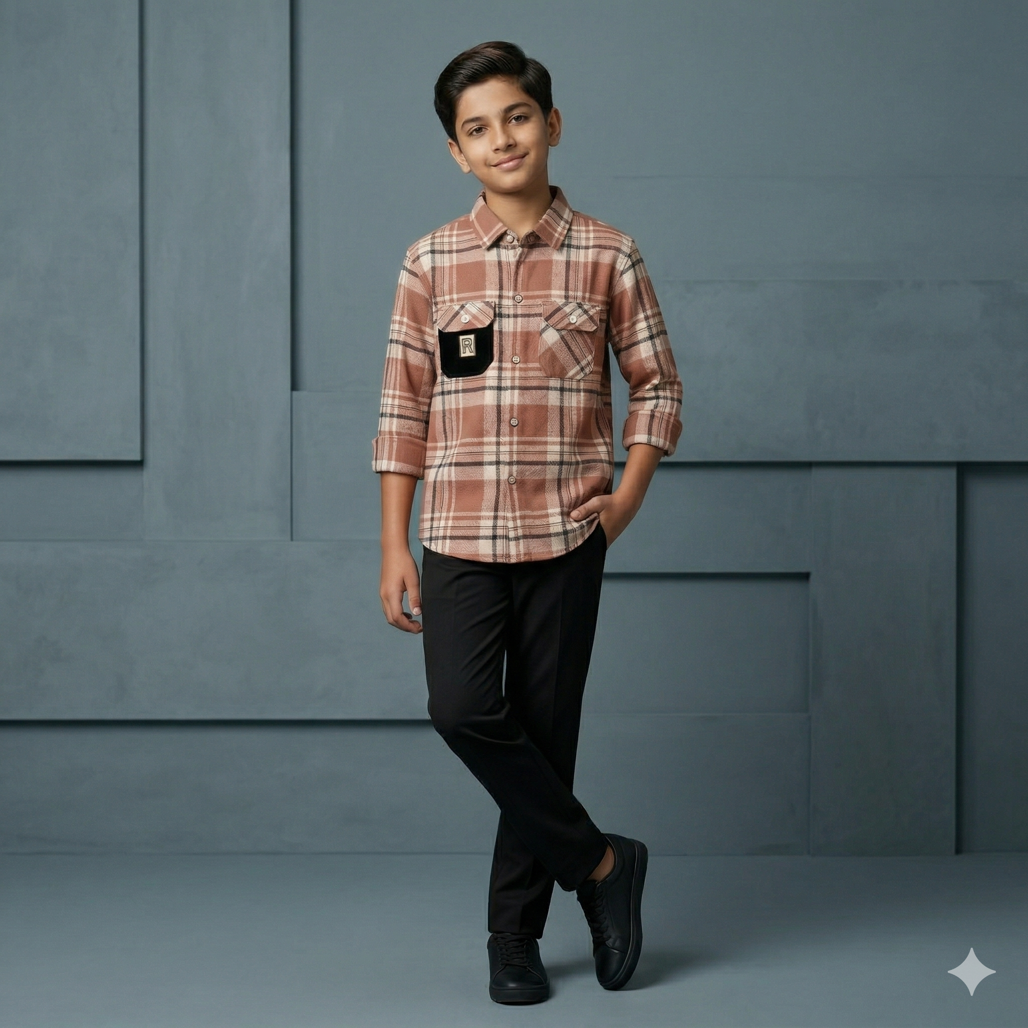 Men’s Rust Orange & Beige Checkered Shirt