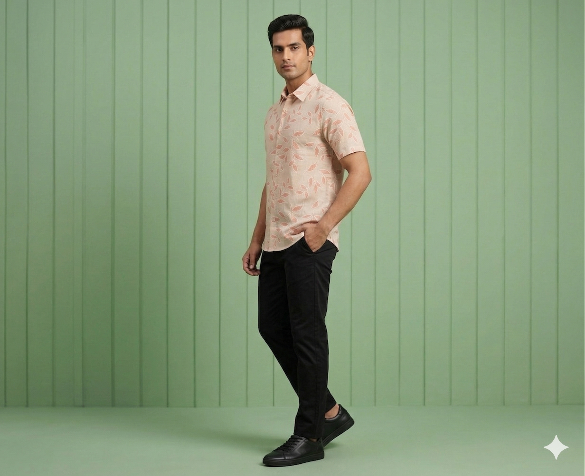 Refresh your everyday style with this elegant Peach Leaf Shirt, designed to offer a perfect blend of subtle sophistication and modern comfort. Featuring a soft peach base adorned with delicate leaf prints, this shirt brings a calm and refined aesthetic to your wardrobe.