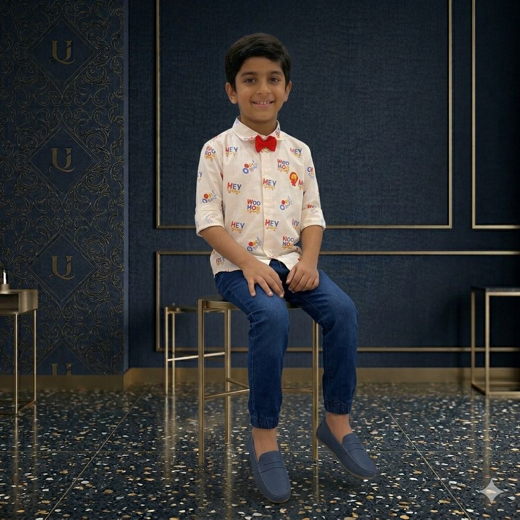 Add a fun and stylish twist to your child’s wardrobe with this vibrant Playful Print Shirt. Designed with eye-catching multicolor prints on a soft white base, this shirt brings a cheerful and energetic vibe, perfect for casual outings, birthday parties, and special occasions.